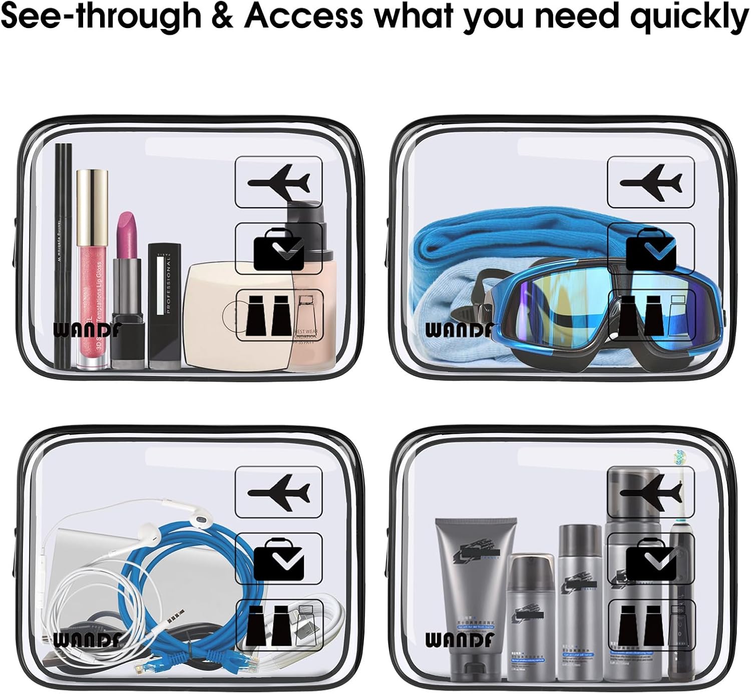 Designed with durable zippers for secure closure, these clear bags allow for quick and easy identification of your items while passing through security checkpoints. The compact size and lightweight construction make them convenient for carry-on luggage, ensuring you can breeze through airport screenings with ease.